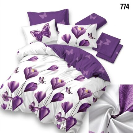 Lenjerie finet 6 piese flori mov aduce un aer de eleganță și prospețime direct în sanctuarul tău de odihnă. Confecționată dintr-o țesătură de bumbac finet superioară, această lenjerie oferă o textură catifelată și un design floral rafinat, asigurând confortul termic ideal și o rezistență remarcabilă în timp pentru un somn liniștit.