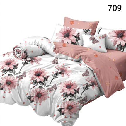Lenjerie finet 6 piese flori aduce frumusețea și prospețimea unei grădini înflorite direct în sanctuarul tău de odihnă. Confecționat dintr-o țesătură de bumbac tratată special pentru a oferi o moliciune supremă, acest set premium îmbracă patul cu un design floral spectaculos, asigurând o experiență tactilă desăvârșită și echilibrul termic perfect indiferent de sezon.
