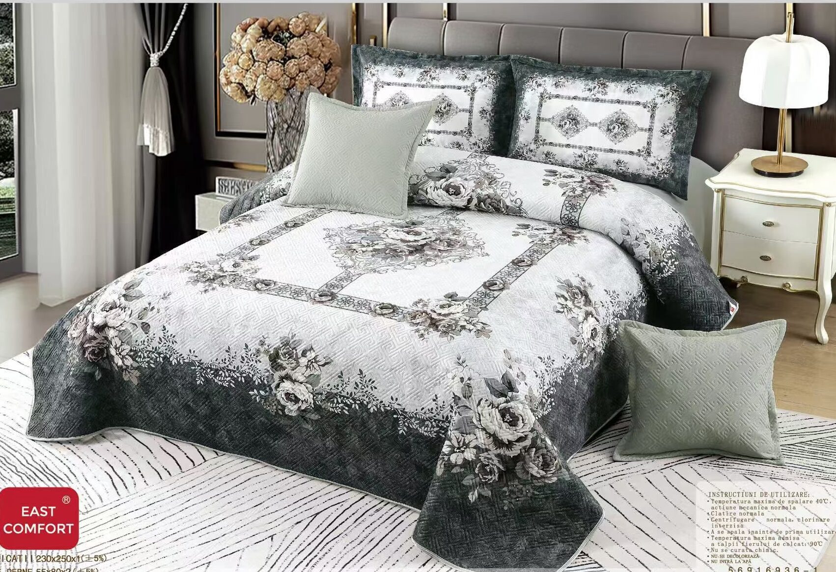 Set Cuvertura de Pat, matlasata, din catifea + 4 fete de perna. Cuvertura din catifea matlasata adaugă mai multă căldura si eleganta dormitorului tău.