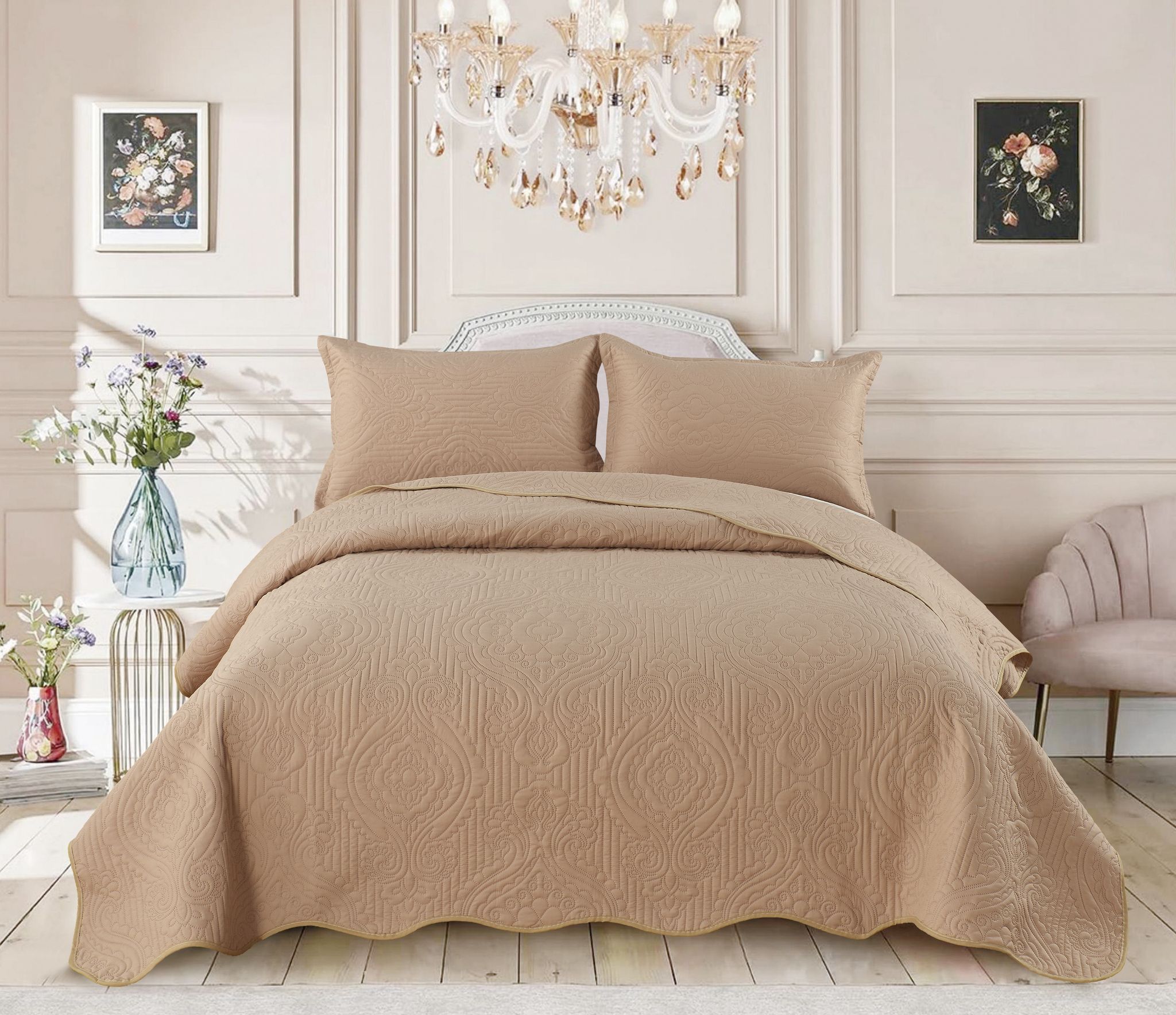 Cuvertură de pat din poliester plus 2 fete de perna , 3 piese .