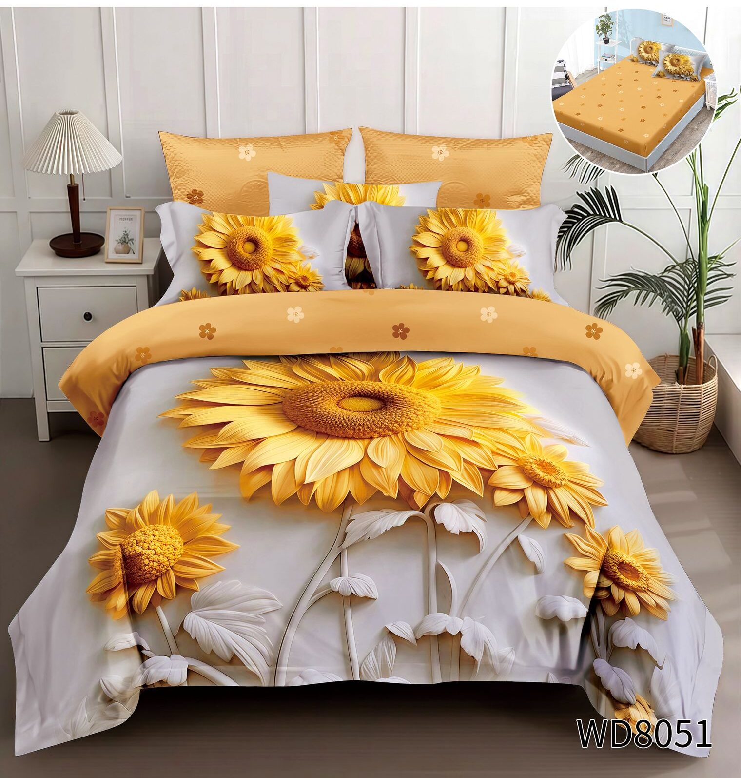 Lenjerie pat dublu 5 D DIGITAL PRINT floarea soarelui cu elastic 5D38
