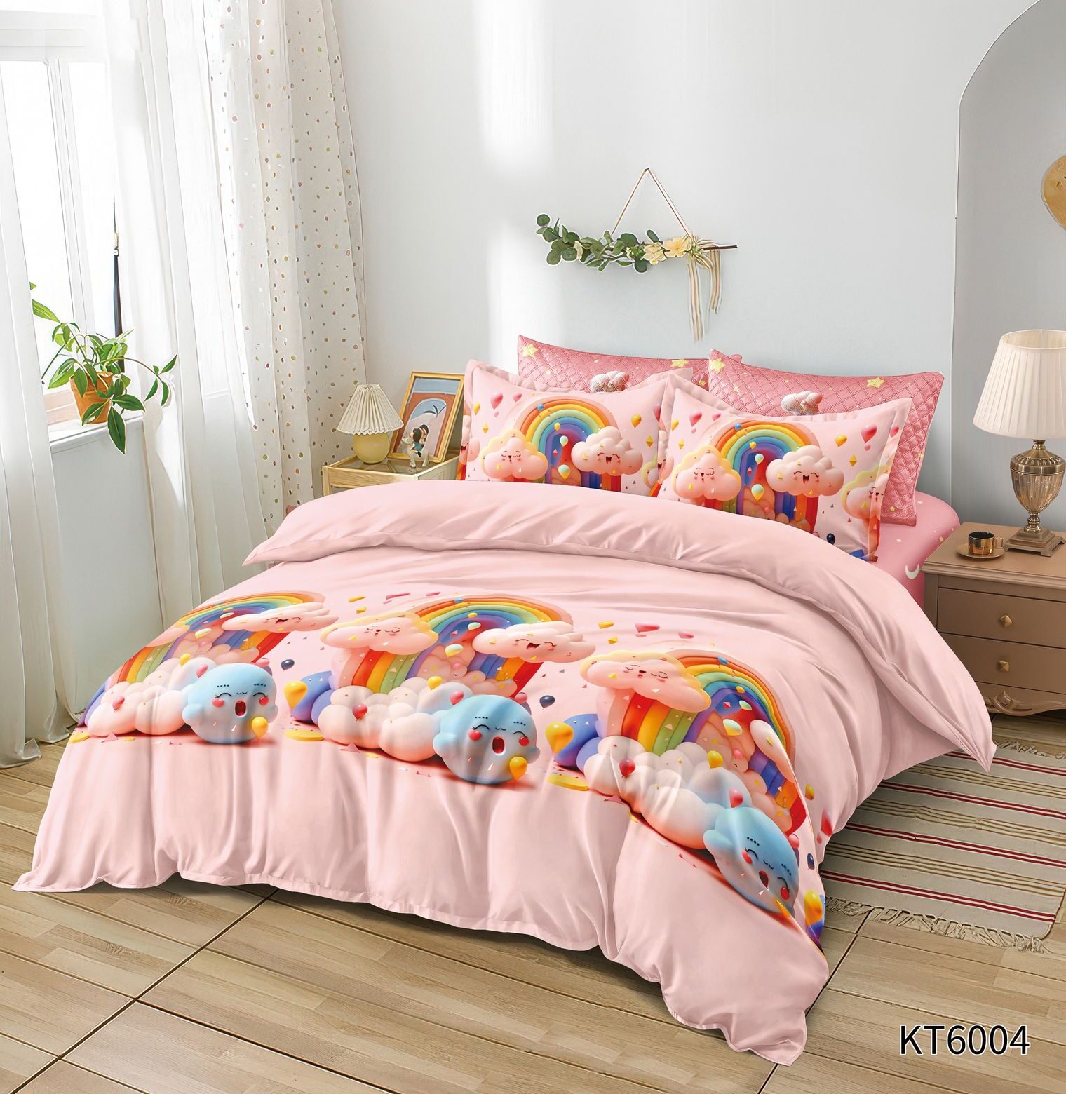 Lenjerie pat dublu cu elastic 6 piese curcubeu KT11