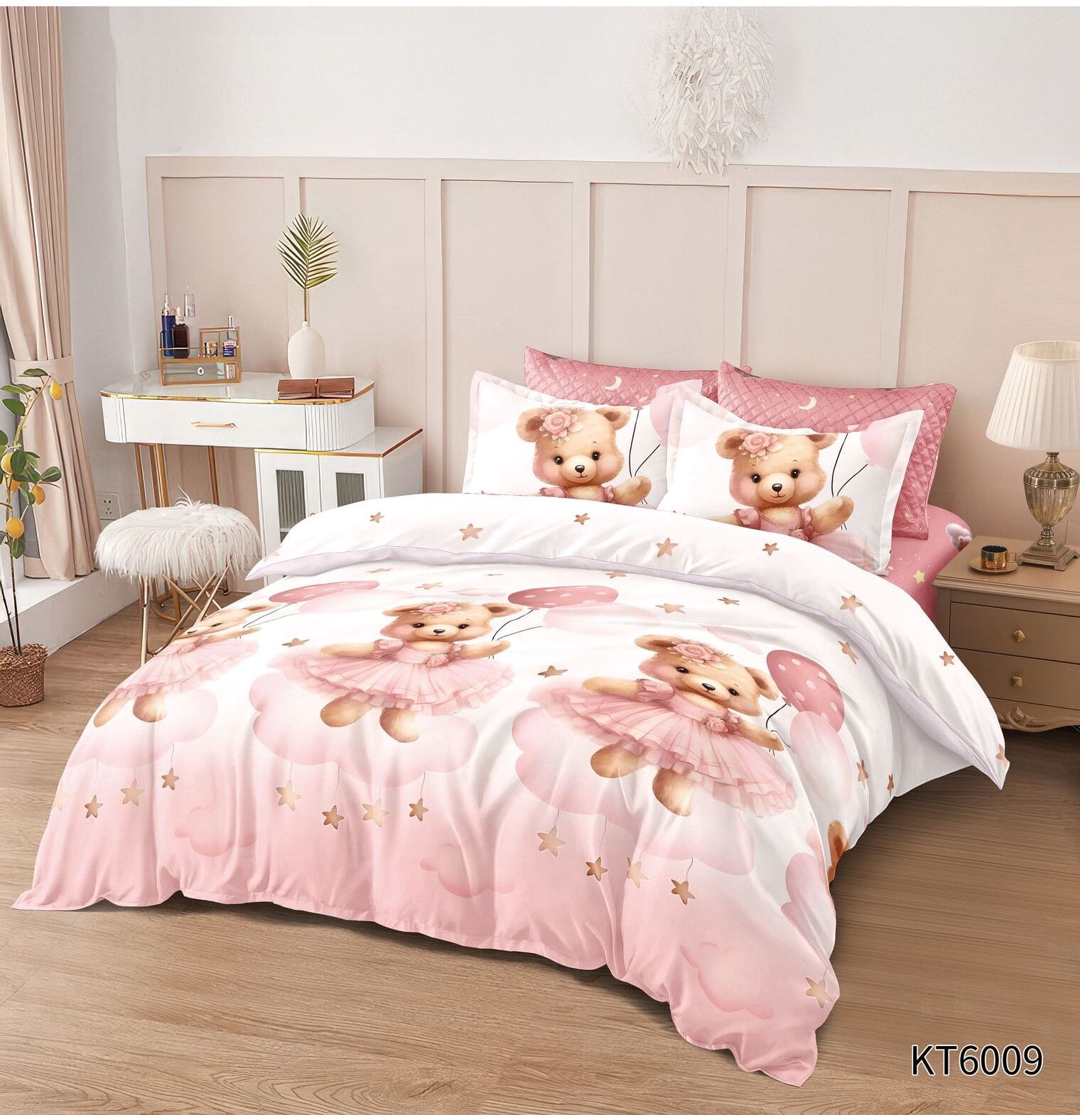 Lenjerie pat dublu cu elastic 6 piese ursuleti KT08