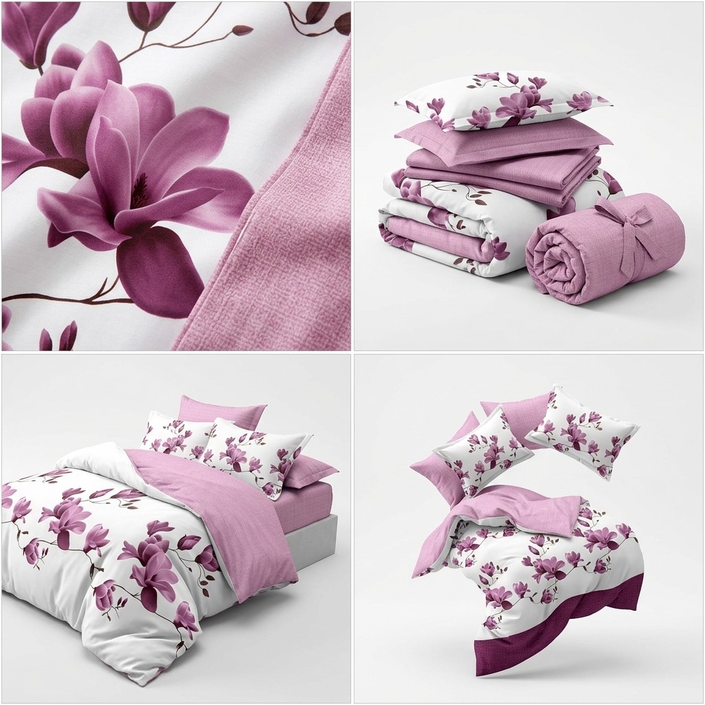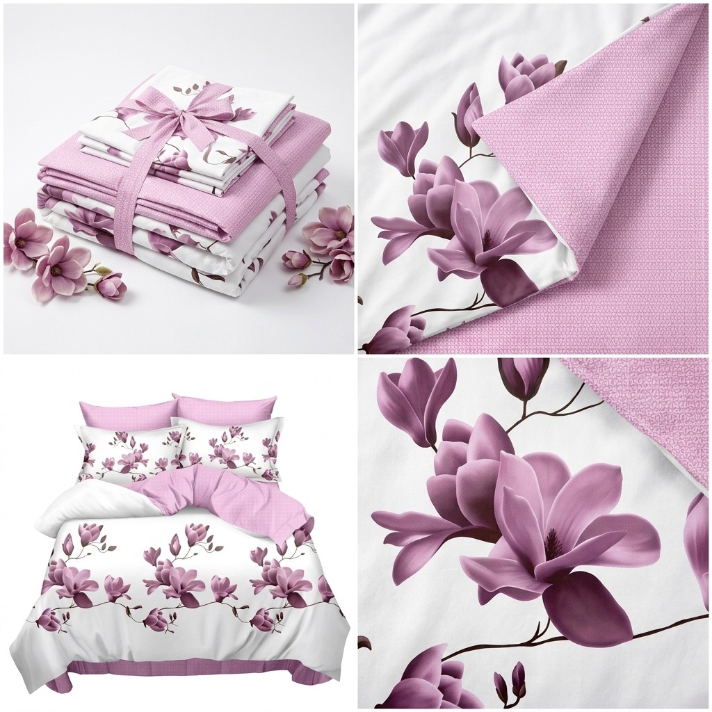 Imprimeul acestui set este realizat cu o precizie remarcabilă, utilizând nuanțe de roz și crem care induc o stare de calm și optimism. Tehnologia de imprimare reactivă utilizată pentru această lenjerie de pat bumbac finet 6 piese garantează că nuanțele magnoliilor își păstrează profunzimea și claritatea chiar și după utilizări repetate. Este o metodă eficientă de a aduce o notă de eleganță feminină în dormitor, modelul Magnolie Roz devenind rapid punctul focal al încăperii, oferind un aspect ordonat și plin de rafinament.