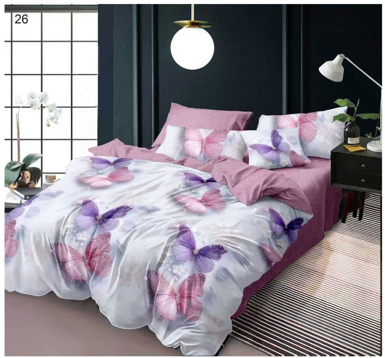 Lenjerie de pat din bumbac finet Super Elegant Pucioasa fluturi roz 26