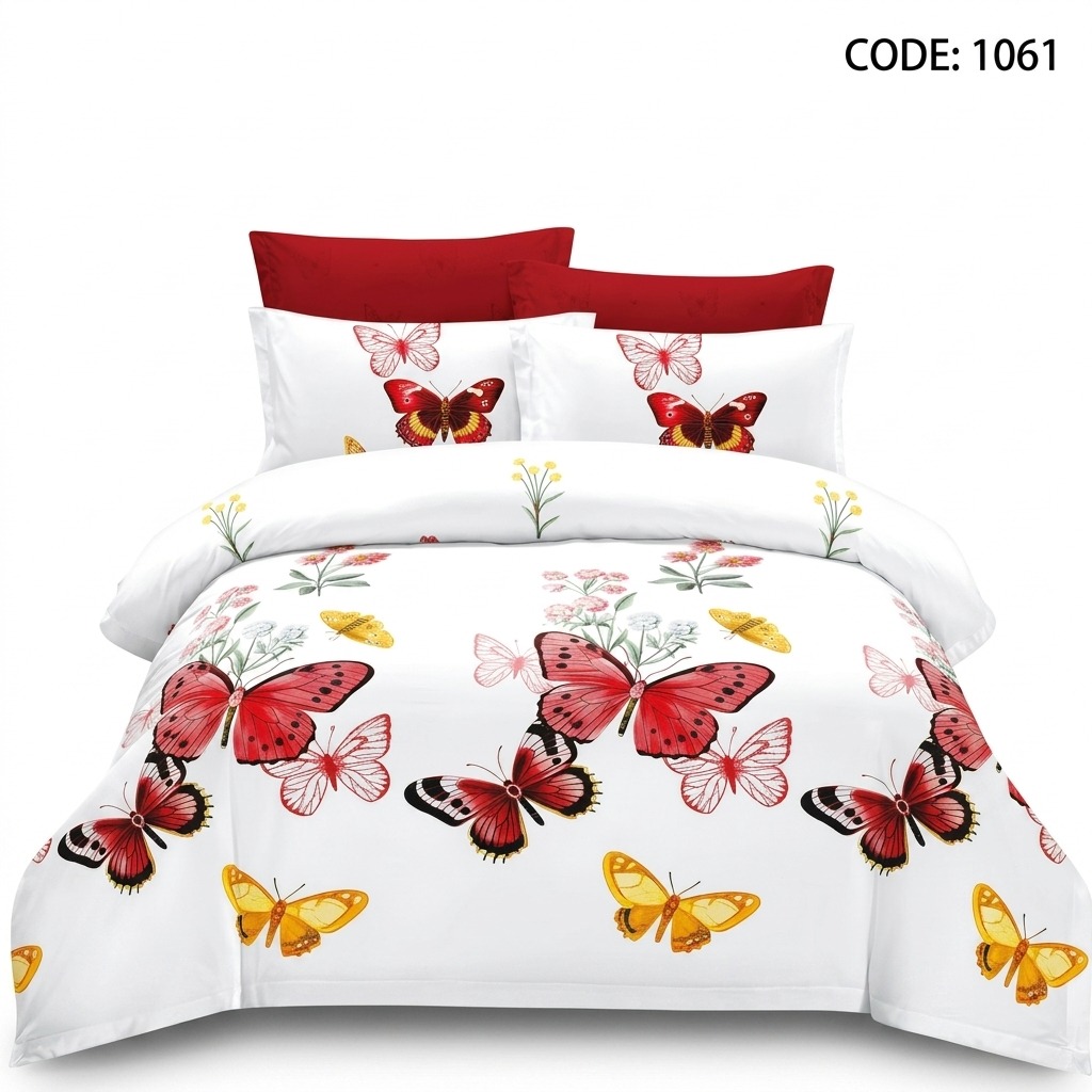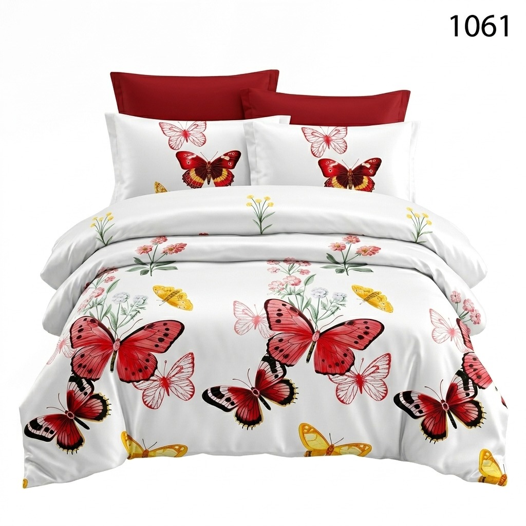 Această lenjerie finet 6 piese fluturi rosu galben aduce o explozie de vitalitate și un aer primăvăratic direct în sanctuarul tău. Confecționat dintr-o țesătură de bumbac finet premium, setul oferă o moliciune supremă și un design plin de viață.