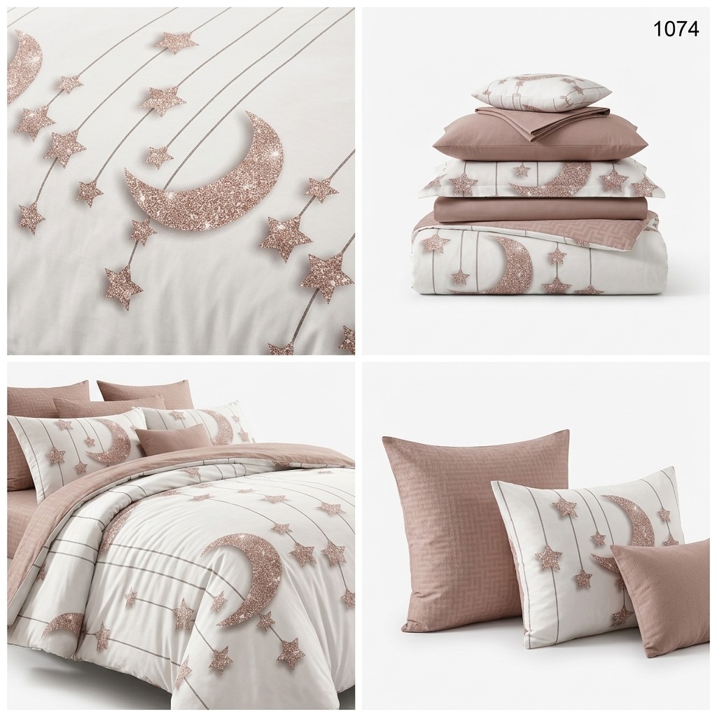 Acesta lenjerie finet 6 piese luna si stele aduce magia nopților înstelate direct în spațiul tău. Confecționat dintr-o țesătură de bumbac atent prelucrată, setul oferă o moliciune supremă și un design celest de poveste.