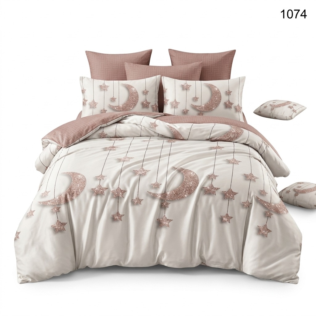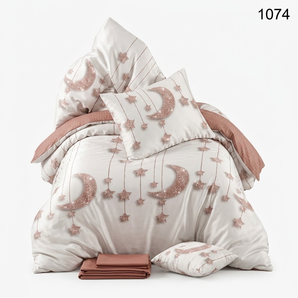 O lenjerie finet 6 piese luna si stele reprezintă mutarea strategică perfectă pentru un dormitor dedicat visării. Nuanțele calde dictează o atmosferă plină de pasiune și liniște nocturnă.