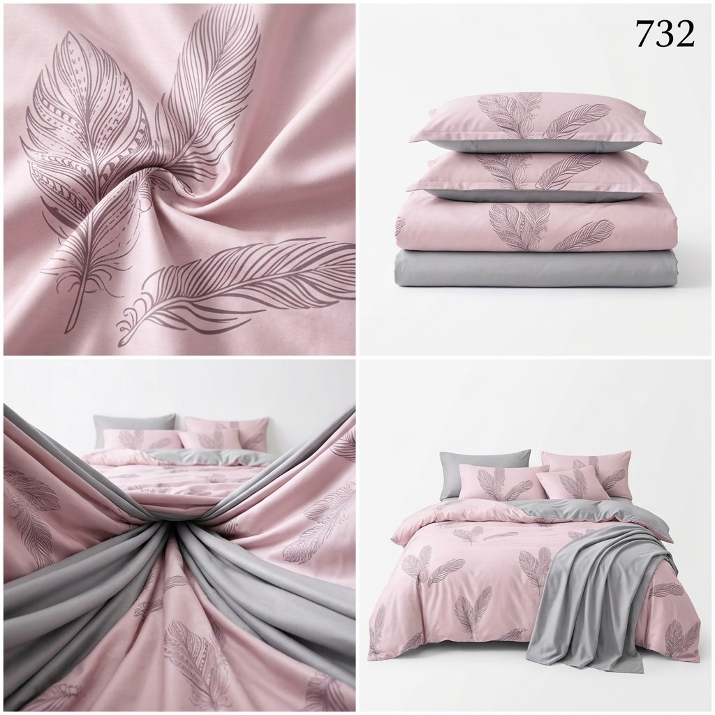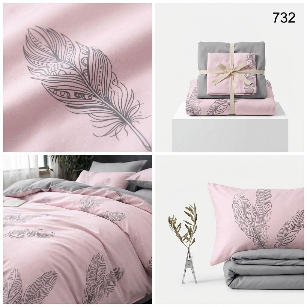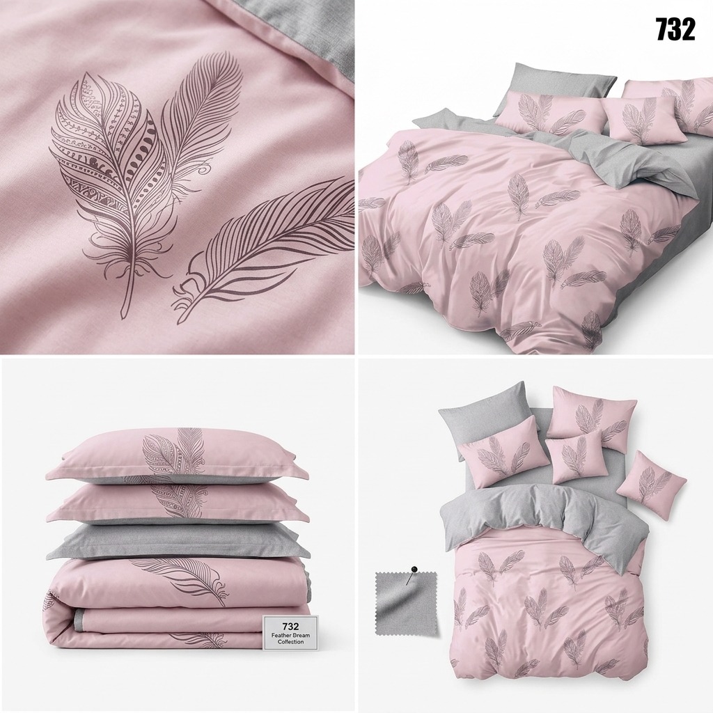 Estetica modelului 732 se bazează pe o combinație armonioasă de gri și roz, culori recunoscute pentru efectul lor calmant și relaxant. Imprimeul cu pene este realizat prin tehnici de imprimare reactivă, care previn decolorarea și fixează pigmenții adânc în țesătură. Această lenjerie finet 6 piese pene 732 se integrează excelent într-un dormitor modern sau romantic, culorile blânde ajutând la eliberarea stresului acumulat peste zi.