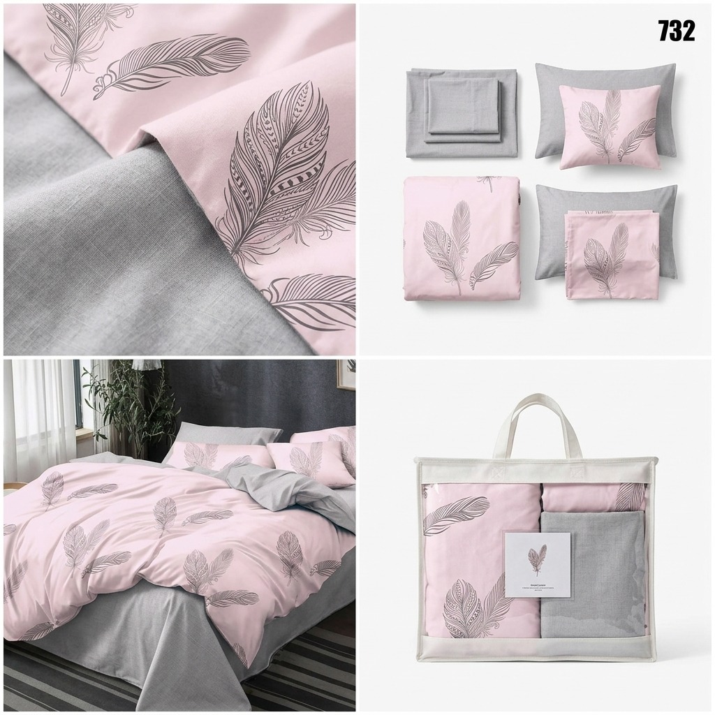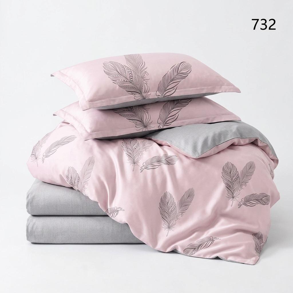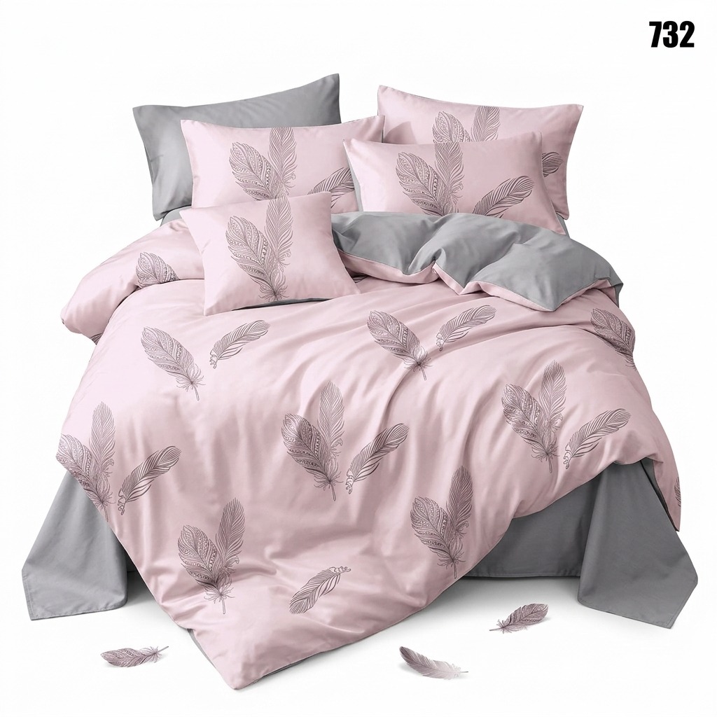 Estetica modelului 732 se bazează pe o combinație armonioasă de gri și roz, culori recunoscute pentru efectul lor calmant și relaxant. Imprimeul cu pene este realizat prin tehnici de imprimare reactivă, care previn decolorarea și fixează pigmenții adânc în țesătură. Această lenjerie finet 6 piese pene 732 se integrează excelent într-un dormitor modern sau romantic, culorile blânde ajutând la eliberarea stresului acumulat peste zi.