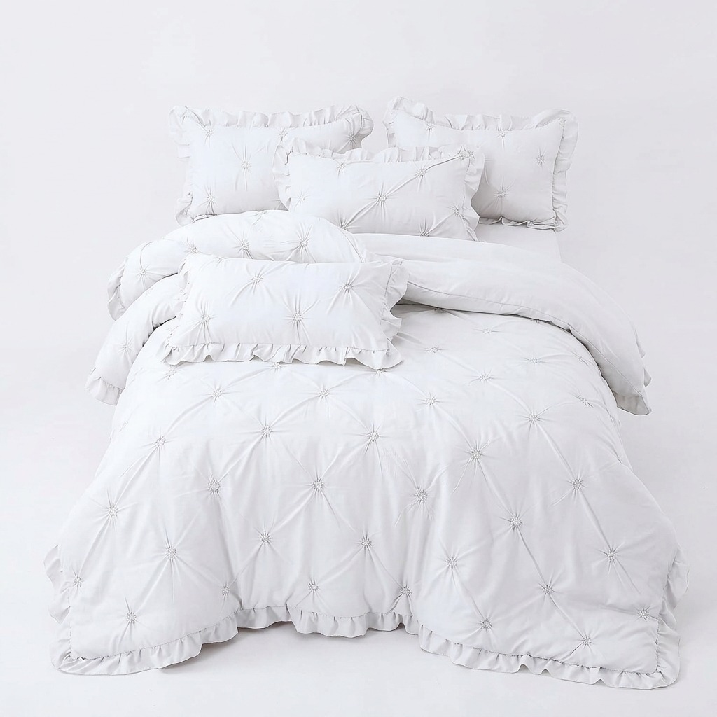 Lenjerie de pat bumbac finet 4 piese, modelul PVP22 cu pliuri și volănașe, este definiția rafinamentului pentru orice dormitor modern care pune preț pe detalii. Acest set uni reușește să combine simplitatea cromatică cu o textură sofisticată, oferind o experiență tactilă deosebită datorită procesului de finisare al fibrelor de Pucioasa. Atunci când alegi așternuturi din bumbac finet cu 6 piese de la Concept Home, investești într-un produs care nu doar arată impecabil, ci oferă și suportul necesar pentru un somn profund, indiferent de sezon.