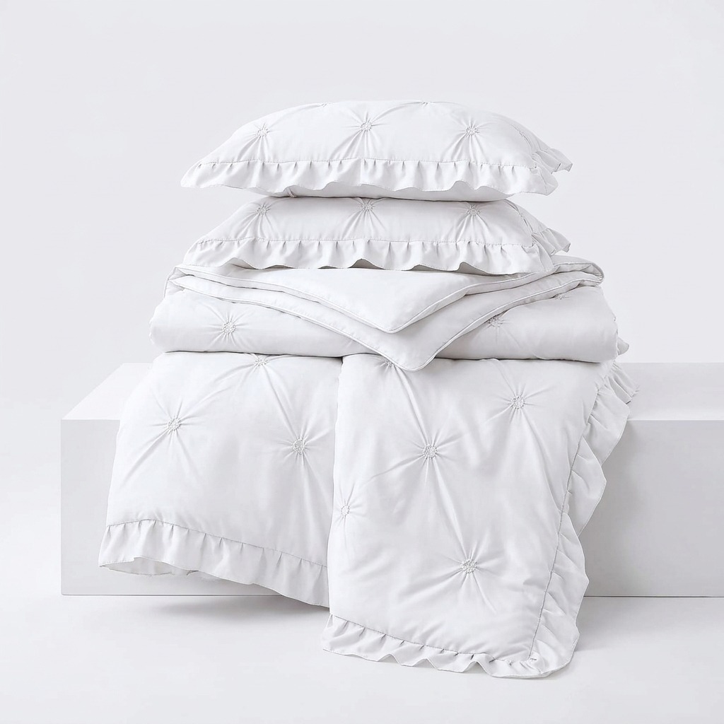 O lenjerie de pat bumbac finet 4 piese bine întreținută poate fi utilizată ani de zile fără a-și pierde textura. Recomandăm spălarea la o temperatură de maxim 40 de grade Celsius pentru a proteja integritatea pliurilor decorative. Un mare avantaj al acestui material este rezistența sa la șifonare; aceste așternuturi de 4 piese necesită o călcare minimă, fiind gata de pus pe pat imediat după uscare. Conform specificațiilor tehnice despre bumbac, fibrele naturale sunt sigure pentru piele, fiind hipoalergenice și extrem de igienice.