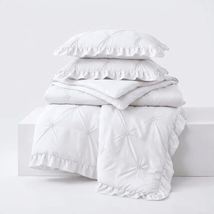 Adaugă un plus de eleganță dormitorului tău cu acest set de lenjerie de pat bumbac finet 6 piese, modelul PVP22. Decorată cu pliuri și volănașe discrete, aceasta oferă o textură catifelată și o durabilitate remarcabilă, fiind alegerea perfectă pentru un decor uni rafinat și un somn odihnitor.