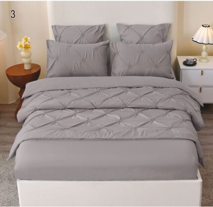 Lenjerie de pat cu elastic Uni din finet cu pliuri 6 PIESE