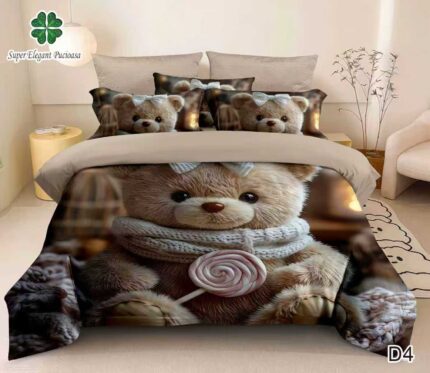 Lenjerie pat dublu cu ursuleti 5 D DIGITAL PRINT cu elastic 6 piese 5D80
